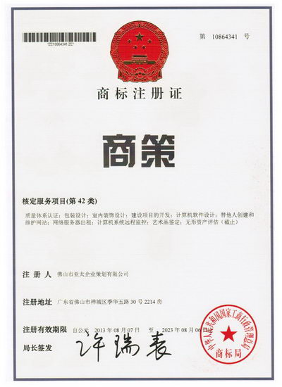 热烈祝贺!本公司【商策】商标第42类注册成功取得商标证书
